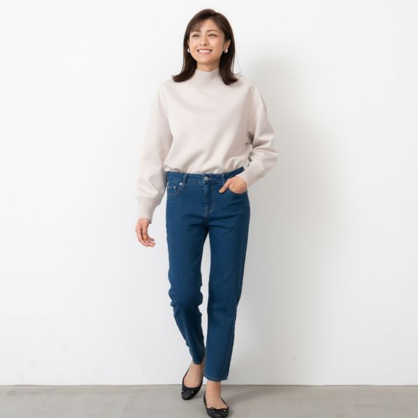 ひざから裾にかけてまっすぐ落ちるストレートシルエット。着こなしにあわせて選べる2レングス。