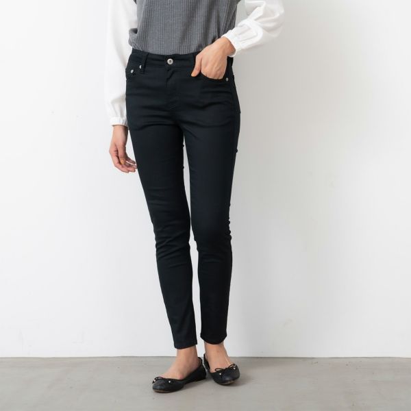 気になる下半身をスッキリみせる細身のシルエット。着こなしにあわせて選べる2レングス。