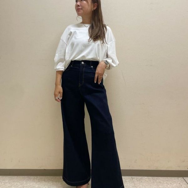 安心感のある少し深めのハイウエストの、ワイドシルエットデニムです