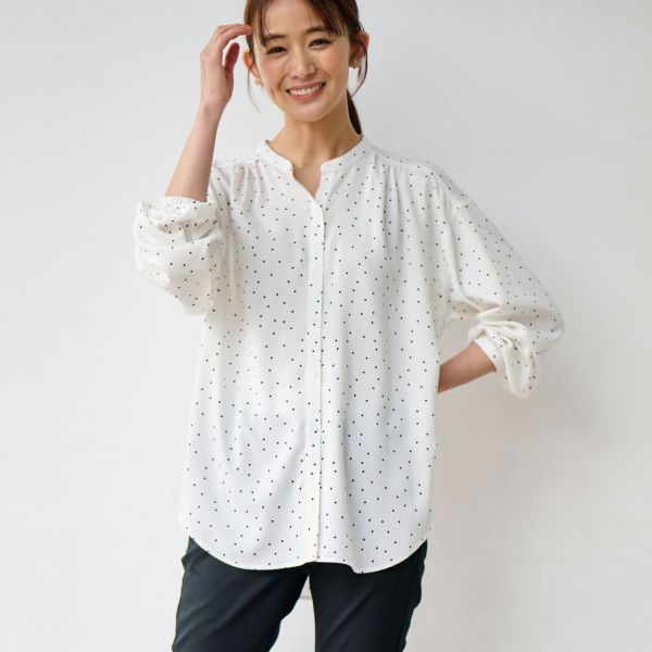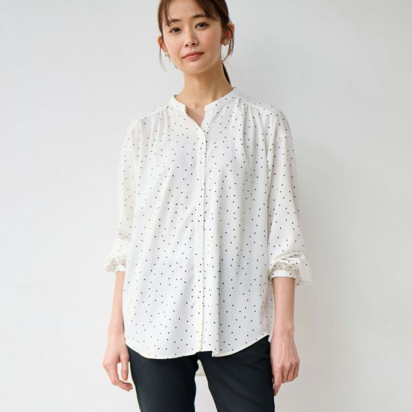 シンプルで抜け感のあるスキッパーバンドカラーのブラウスです