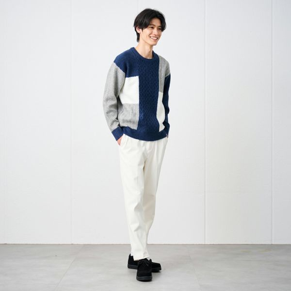 キッチリ感を出せるのでセミドレススタイルやテレワーク、カジュアルまで幅広いシーンに対応。