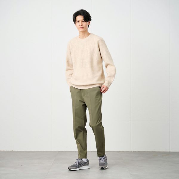 キッチリ感を出せるのでセミドレススタイルやテレワーク、カジュアルまで幅広いシーンに対応。