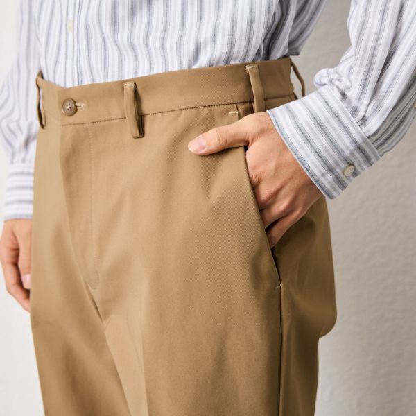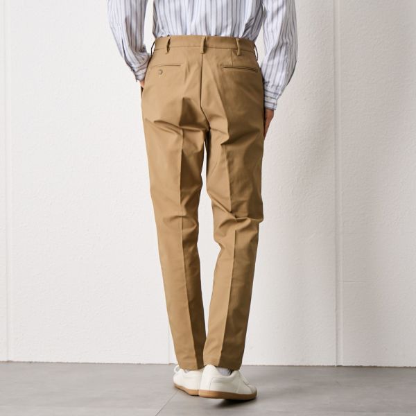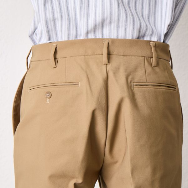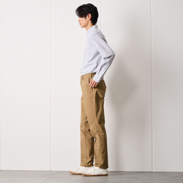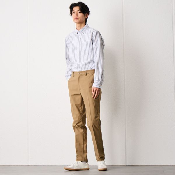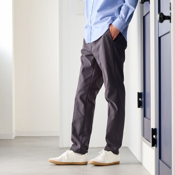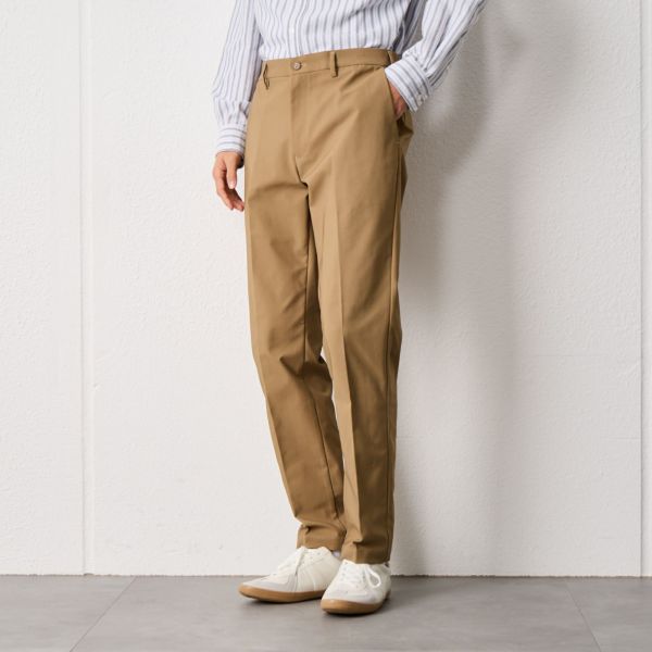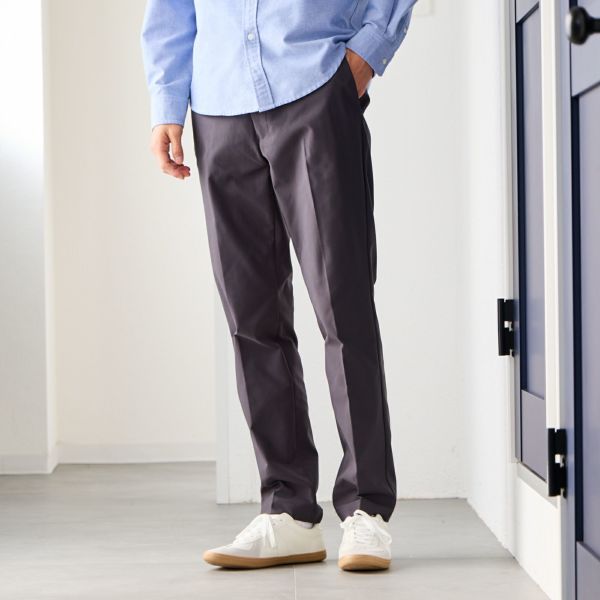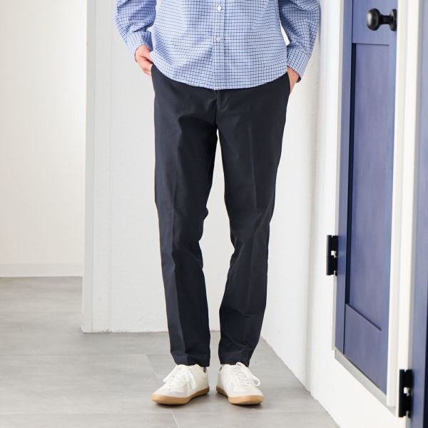 吸汗速乾機能を備え発汗時にべたつかず、洗濯後の乾燥も早い高機能素材を使用したチノスラックスです。