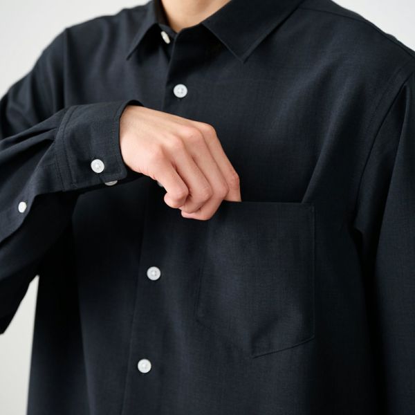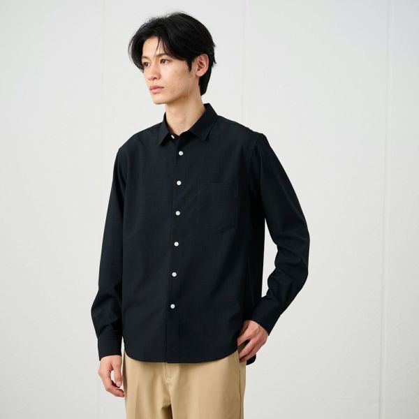 ONでもOFFでもスタイルが決まる、レギュラーカラーの長袖シャツ。