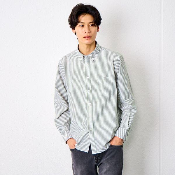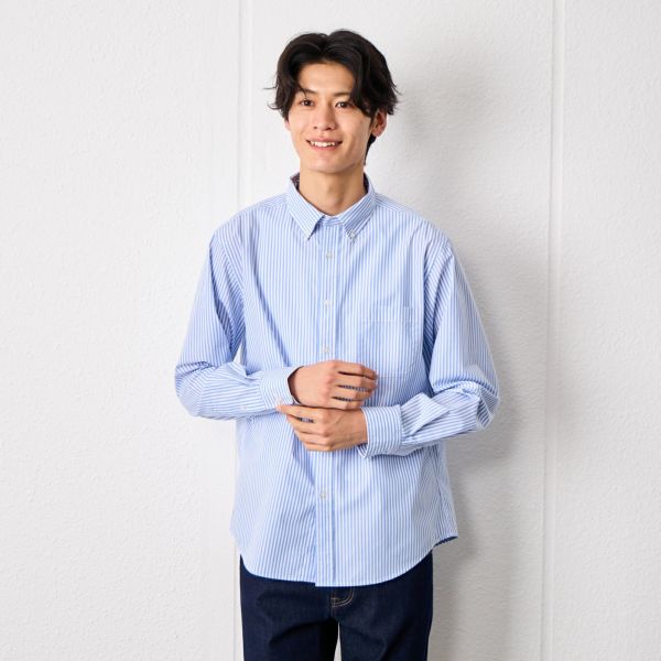 皺になりにくい素材なので、アイロン掛けが楽ちん ブロードストライプボタンダウンシャツ メンズ【店舗取寄】