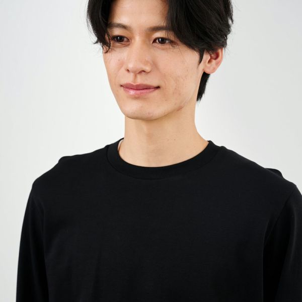 シルクのような手触りを実感できる、特殊な加工を施したTシャツ。