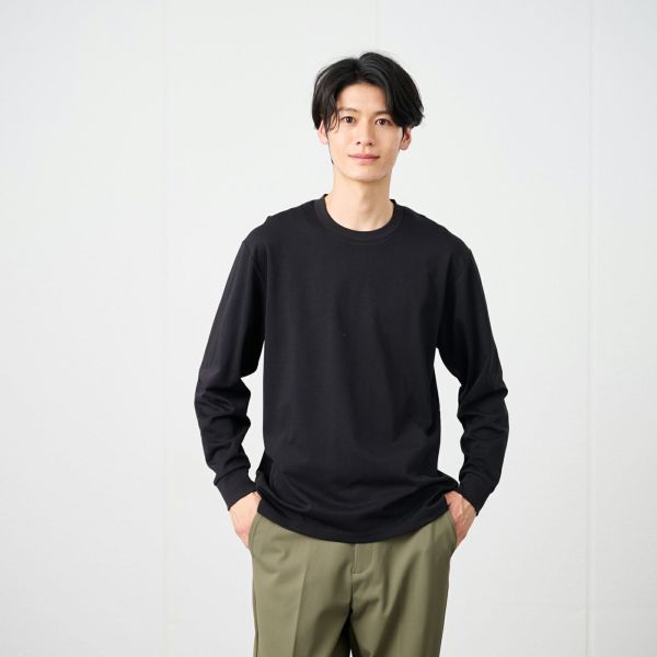 ハリのあるダブルフェイス素材を使用したTシャツ。